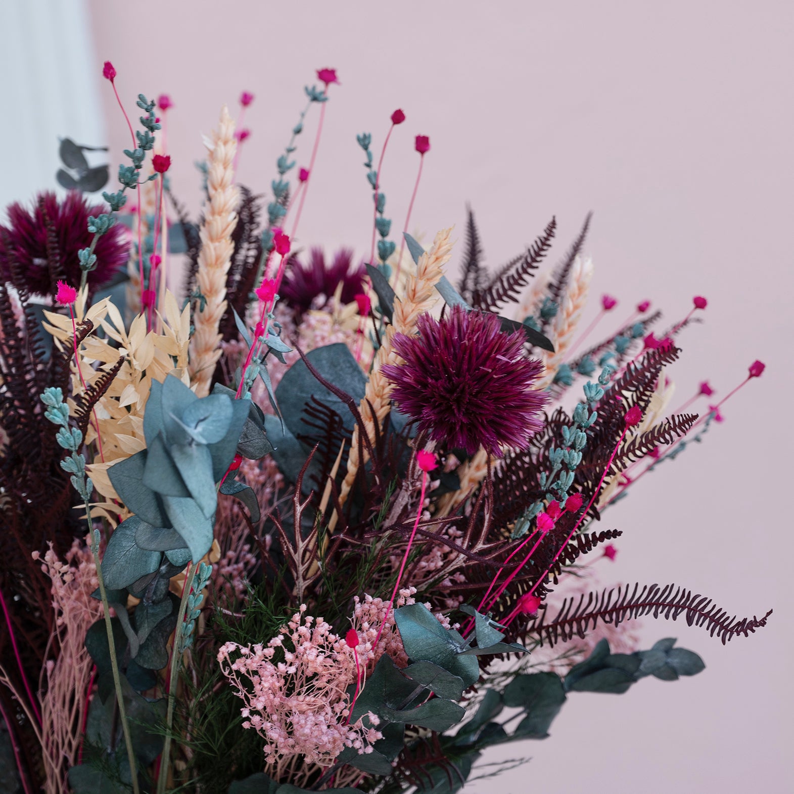 Uanset om du ønsker en lyserød buket, en grøn buket eller en buket med blå blomster, tilbyder vi et bredt udvalg af langtidsholdbare buketter til enhver smag. Hver buket er håndlavet for at sikre smukke buketter af høj kvalitet, og det vil derfor være en smuk blomstergave til fødselsdag en form for evighedsbuket.