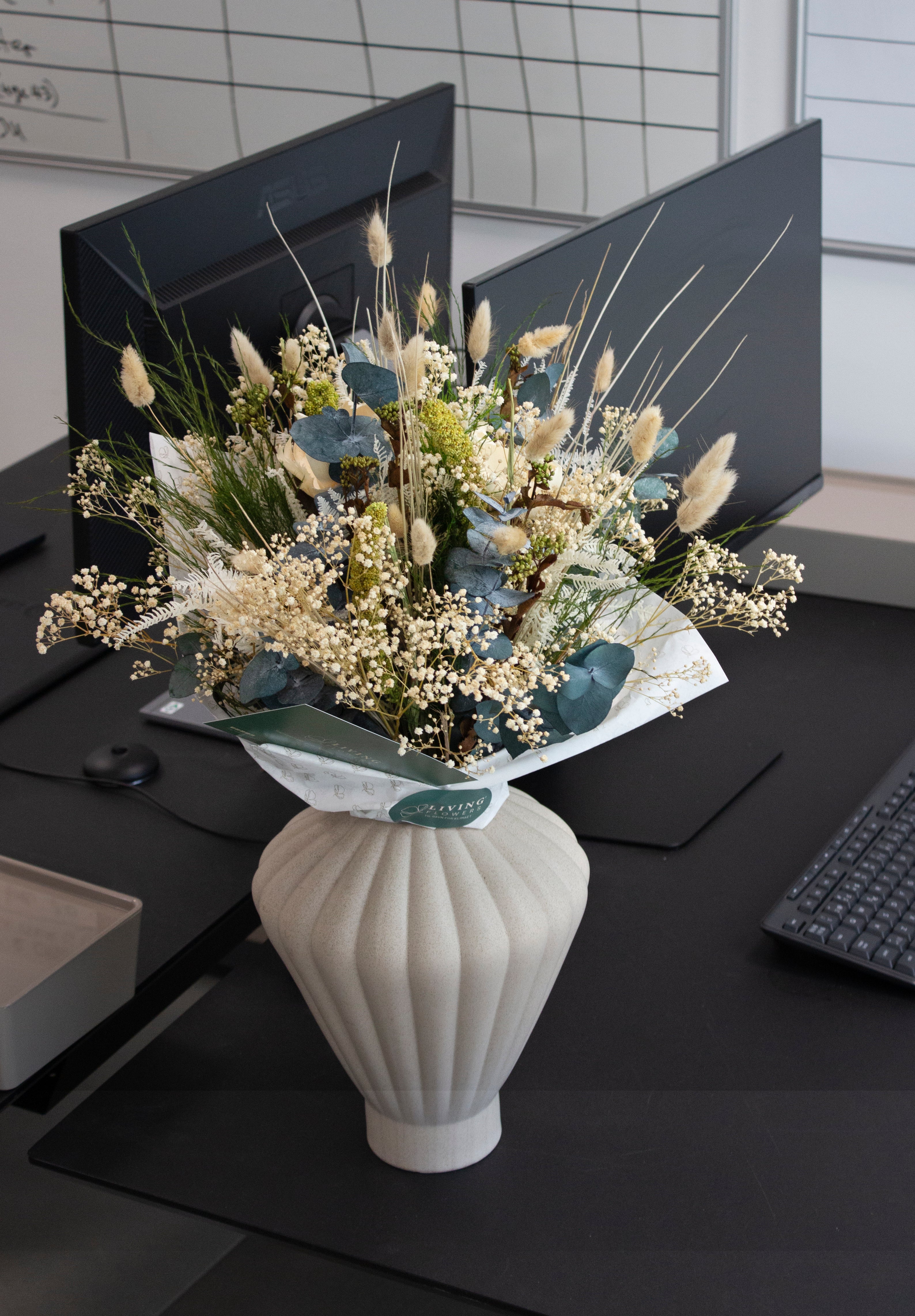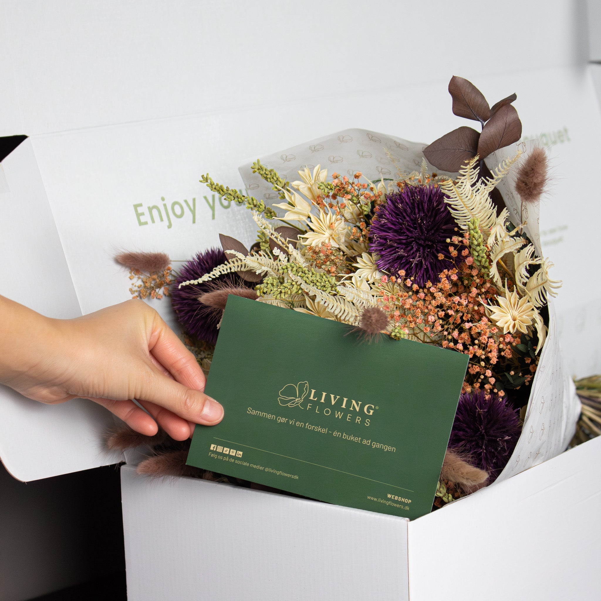 Hos Living Flowers tilbyder vi firmagaver med omtanke til dine medarbejdere og ansatte. Vores langtidsholdbare blomsterbuketter holder i månedsvis og kræver ingen vedligeholdelse – og kan leveres direkte til modtagerens arbejdsplads eller hjem.