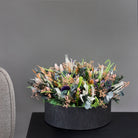 Placér dekorationen et sted uden direkte sol, da solen kan få farverne til at falme hurtigere. - Alle blomsterdekorationer er unikke, fordi vores blomster er naturprodukter, og derfor opstår der naturlige variationer i farve, størrelse og udseende. Vores dygtige florister bestræber sig altid på at lave dekorationen, så den ligner billedet mest muligt. Passer du godt på din blomsterdekoration, kan den pynte i dit hjem i lang tid.