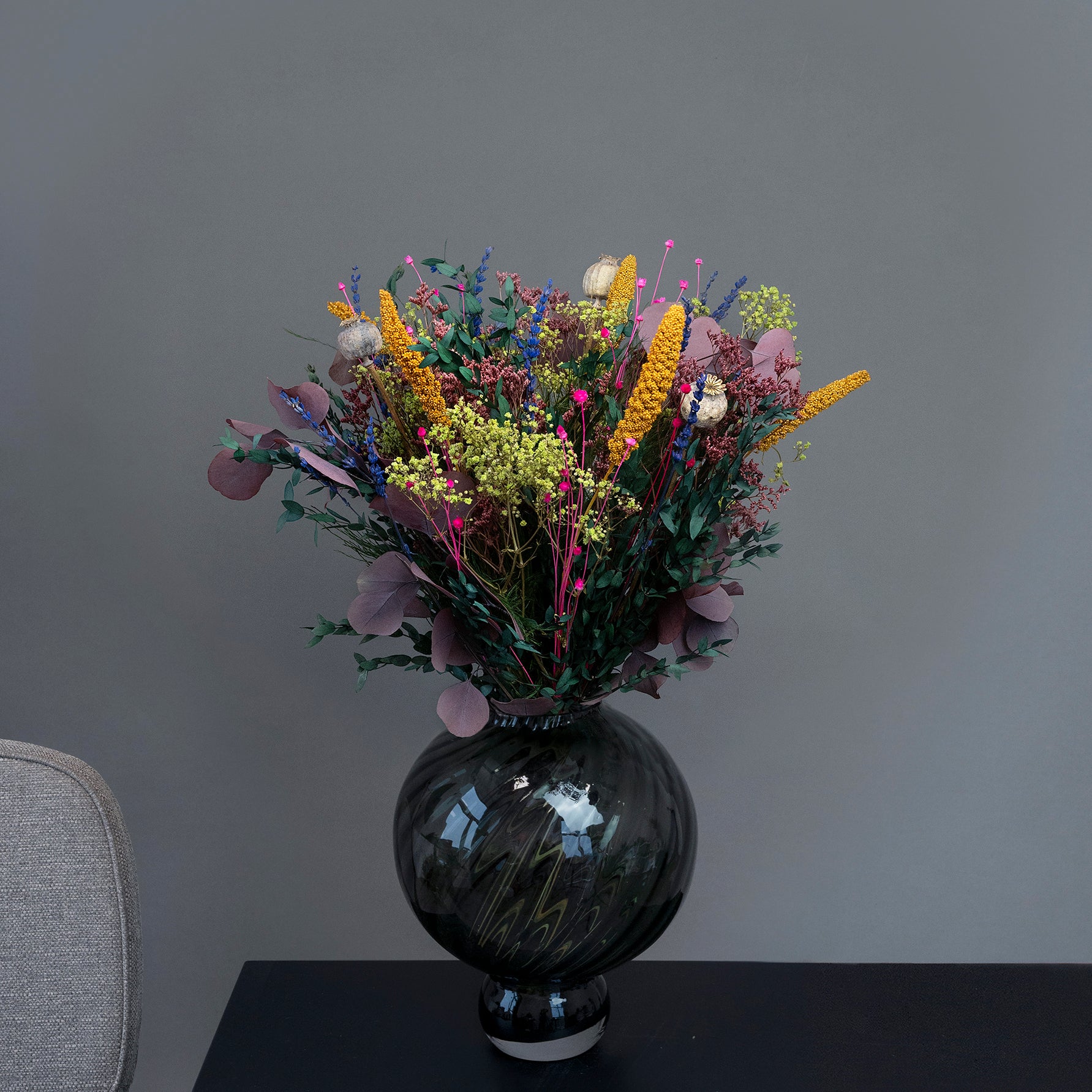 Vores buketter er hverken helt som traditionelle friske eller tørrede blomster – de befinder sig et sted midt imellem.