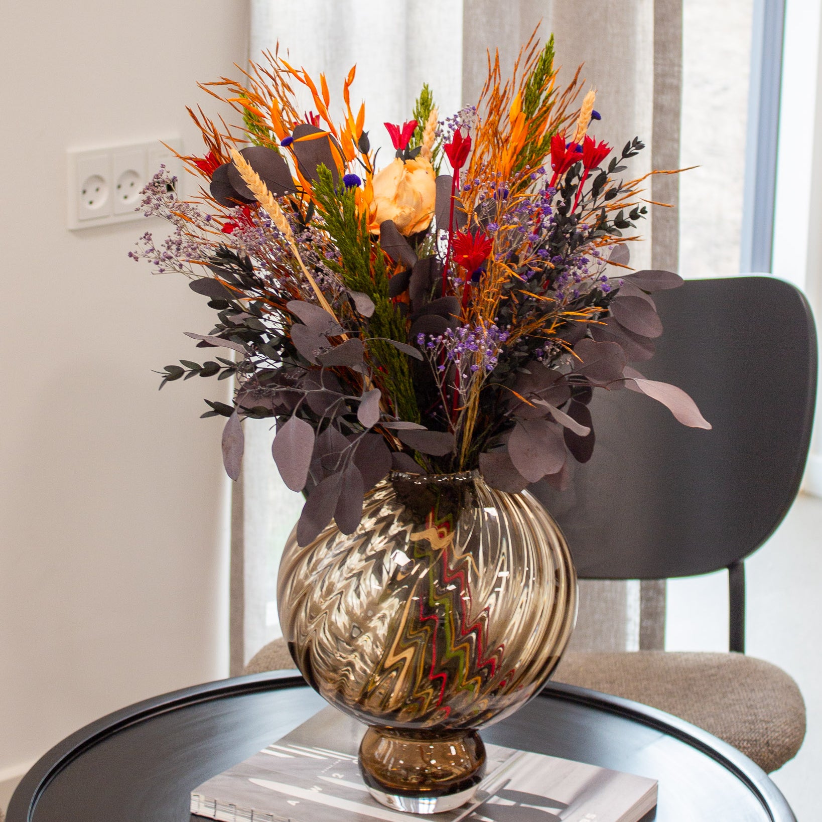 Vores buketter er hverken helt som traditionelle friske eller tørrede blomster – de befinder sig et sted midt imellem.