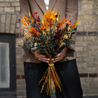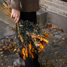 Vores eksklusive Halloweenbuket er designet til at tilføre hjemmet en følelse af mystik og hygge med farver i de gyldne orange og dybe røde toner perfekt til at skabe efterårsstemning i hjemmet. De omhyggeligt sammensatte forskellige langtidsholdbare blomster giver buketten et råt og legende udtryk, der skaber blikfang ægte Halloween-magi.