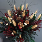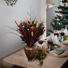 På denne magiske årstid, kan du fortrylle dit hjem med en buket fuld af julemagi. Buket Julemagi er skabt til at fylde dit hjem med ægte julestemning. Denne buket kombinerer dybrøde blomster, grønne toner og naturlige kogler, der tilsammen skaber en hyggelig og elegant julestemning.