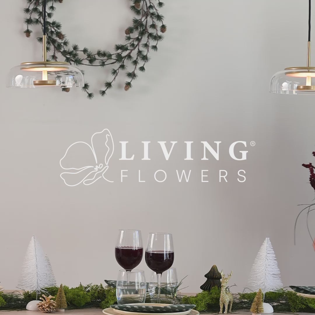 Buket Luksuriøs – Har en højde på 55-60 cm og er 75 % større end størrelse Naturligvis. Denne buketstørrelse passer smukt til et større spisebord eller en skænk. Vi anbefaler brede og runde vaser med en højde på 22-30 cm.