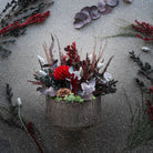 Skab en hyggelig og stemningsfuld jul med den langtidsholdbare dekoration Julepragt. Denne elegante juledekoration kombinerer dybe mørkerøde blomster, mørkegrønne og grålige nuancer samt naturlige brune kogler, der tilsammen skaber et roligt, klassisk og stilfuldt juleudtryk. Dekorationen passer perfekt til vinterens hygge, nordisk juleindretning og som dekorativ detalje i hjemmet eller på kontoret.