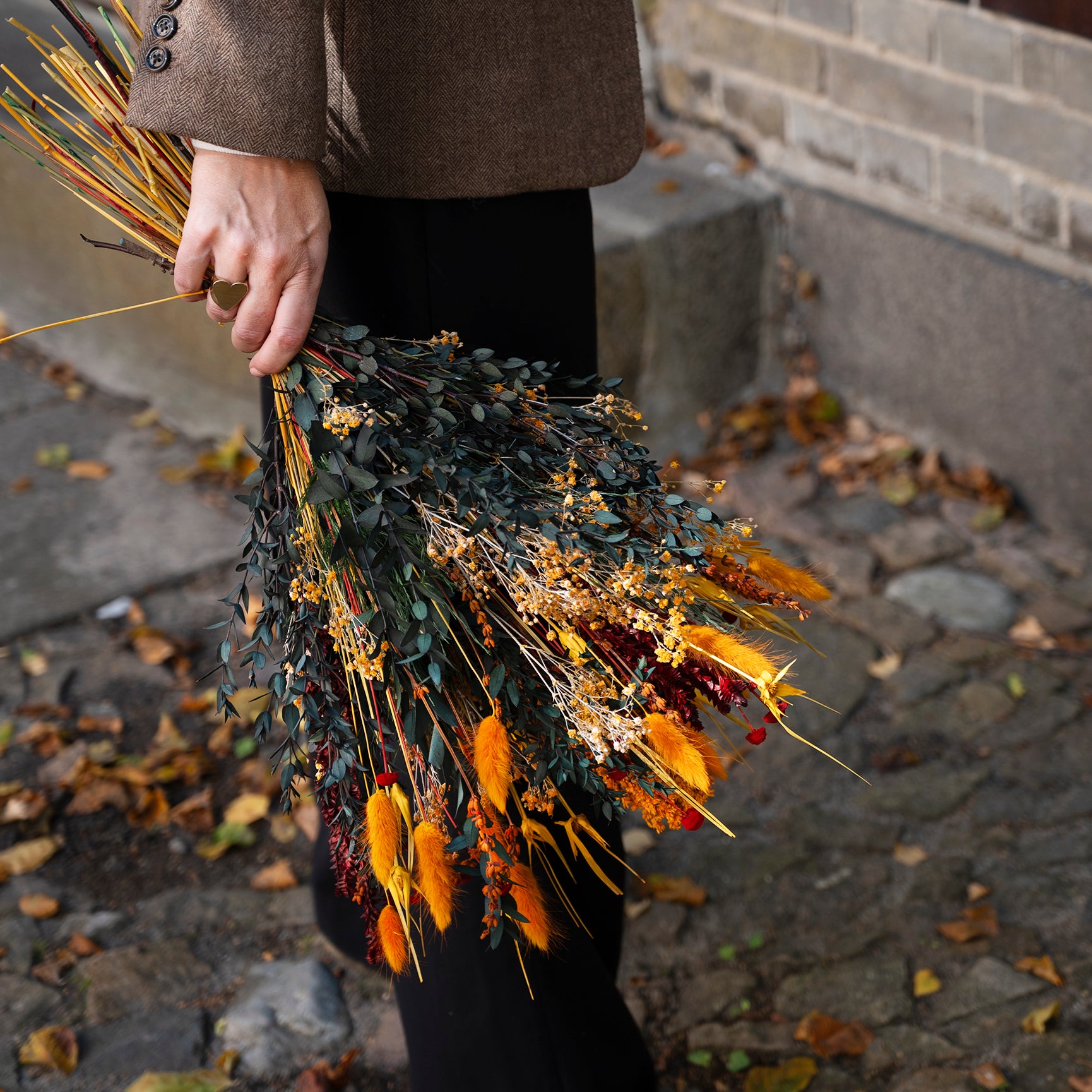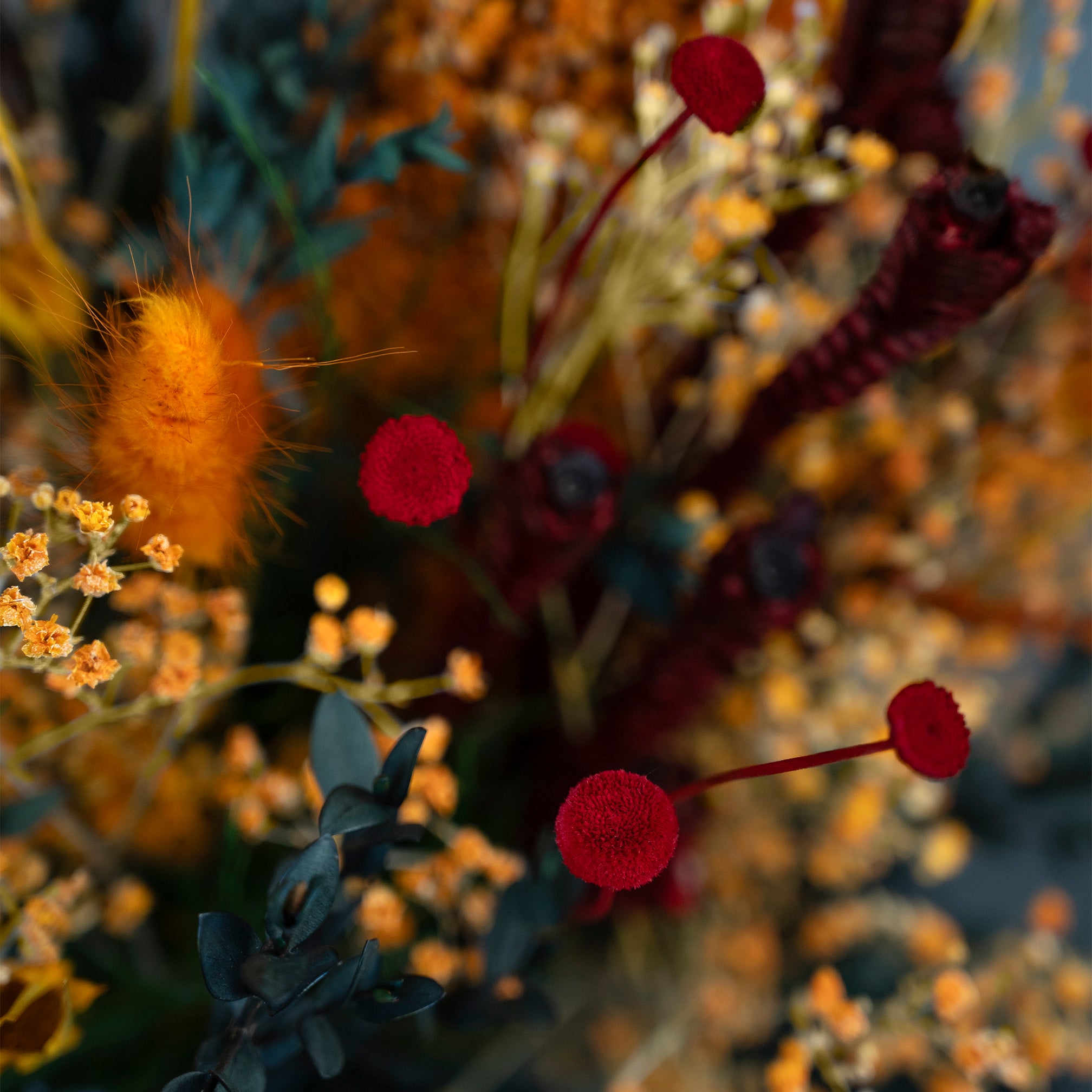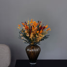 Vores eksklusive Limited Edition er designet til at tilføre hjemmet en følelse af mystik og hygge med farver i de gyldne orange og dybe røde toner perfekt til at skabe efterårsstemning i hjemmet. De omhyggeligt sammensatte forskellige langtidsholdbare blomster giver buketten et råt og legende udtryk.