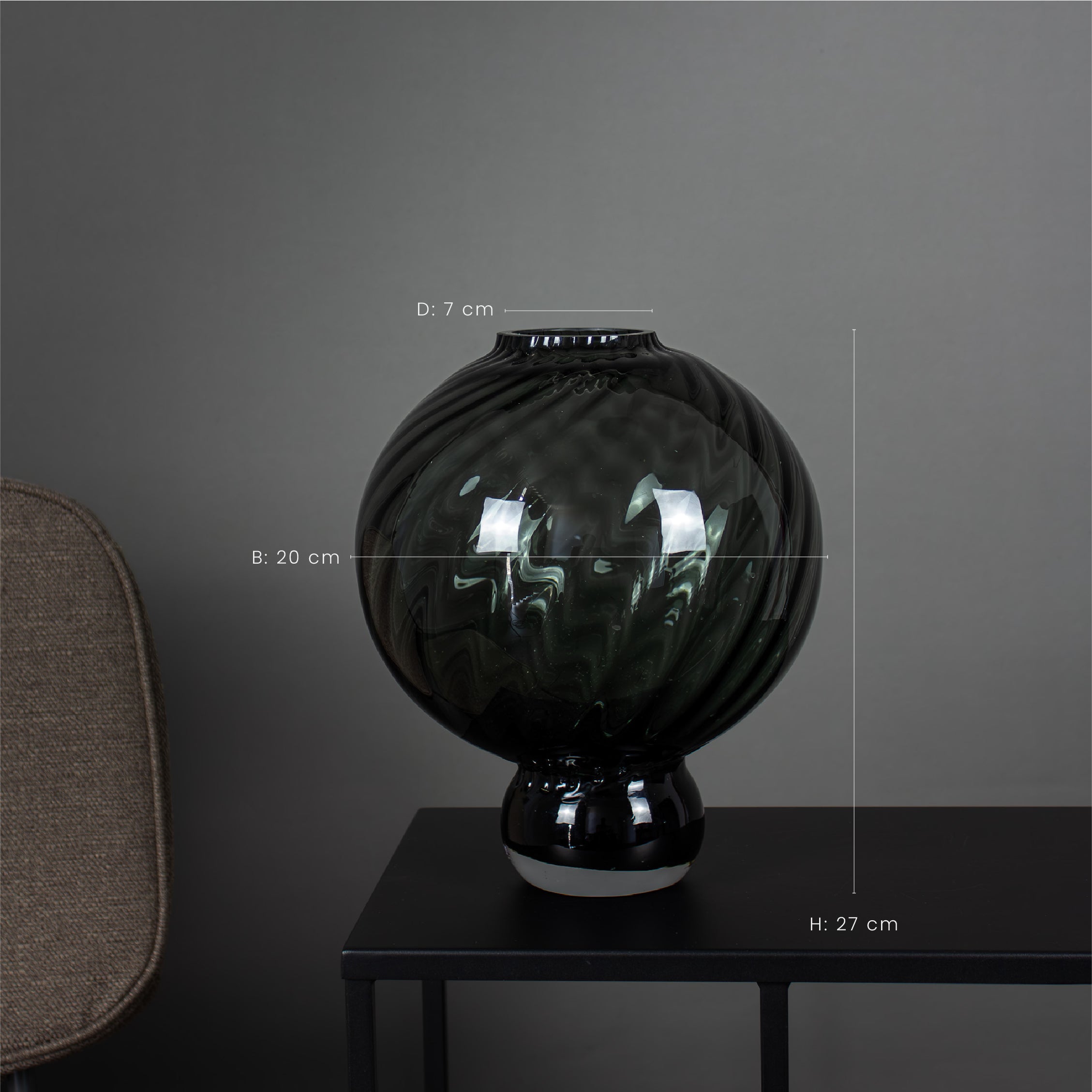 Den flotte grå glasvase tilføjer elegance og tidløs skønhed til dit hjem. Dens neutrale farve gør den alsidig og passer perfekt til vores blomsterbuketter. Vasen er holdbar, hvilket sikrer, at den forbliver en stilfuld del af din indretning i mange år. Perfekt som et dekorativt element på bordet, hylden eller skænken.