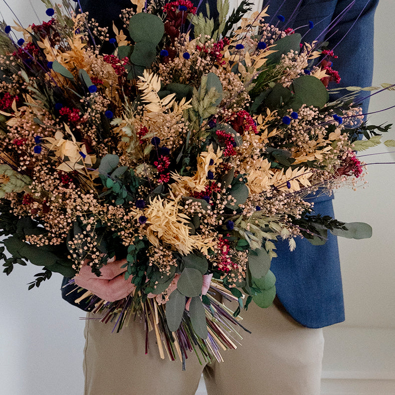 Vores buketter er hverken helt som traditionelle friske eller tørrede blomster – de befinder sig et sted midt imellem.